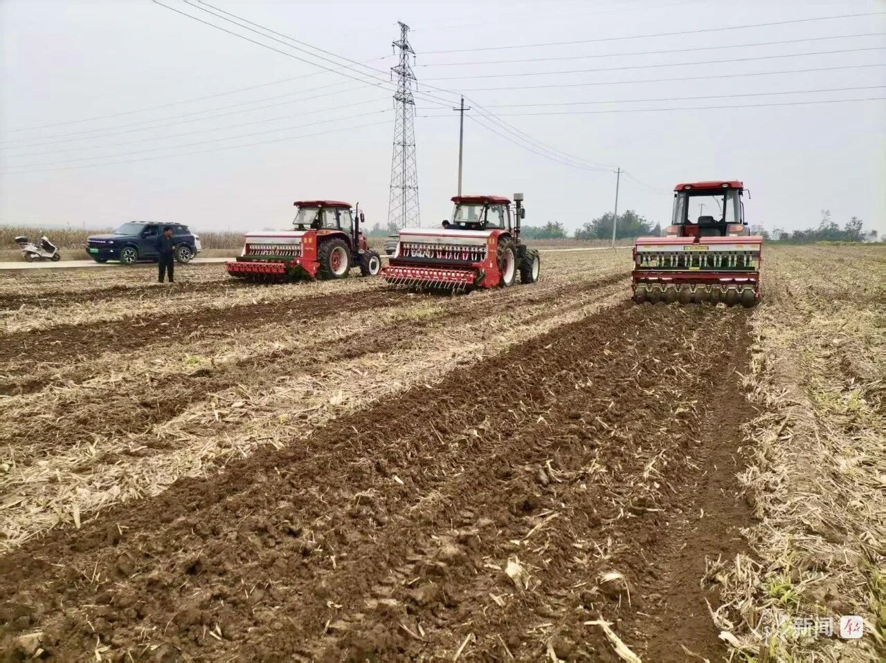 在百公里外的銅川市耀州區(qū)小丘鎮(zhèn)中原村,亞澳農(nóng)機同樣成為搶種主力。“播種期推遲了近十天,土壤又濕,最怕播深不均和倒伏。”農(nóng)機手操控著亞澳寬幅溝播機穿梭田間,機具搭載的指夾式排種器實現(xiàn)精準下種,配合可調(diào)節(jié)播深系統(tǒng),將播種深度嚴格控制在2—4cm的最佳范圍,既滿足銅川市農(nóng)機推廣站副站長姚關(guān)盈提出的“淺播搶積溫”要求,又通過均勻播種避免了“播量過大易倒伏”的風(fēng)險。截至目前,銅川市已調(diào)度1600余臺套農(nóng)機投入秋播,亞澳機具憑借“旋耕、播種、施肥一體化”優(yōu)勢,大幅提升了濕墑地塊的作業(yè)效率,助力農(nóng)戶把延誤的農(nóng)時搶回來。